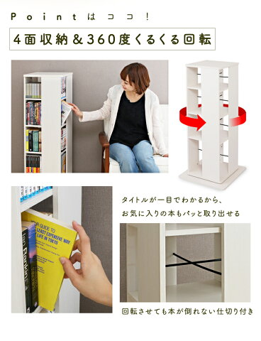 360°回転してタイトルが見えるので、読みたい本が探しやすく、大事な本をコレクションとして収納できます。