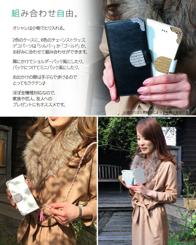 【メール便 送料無料】 スマホケース 手帳型 チェーンストラップ付き 全機種対応/手帳型デコケース 【 斜めがけ ショルダーバッグ 型 】 iPhoneX iPhone8 iPhone7 iPhone6s iPhone5s DIGNO SOV31 SO-03G SC-05G SH-04G F-04G SO-04G docomo au softbank Y!mobile